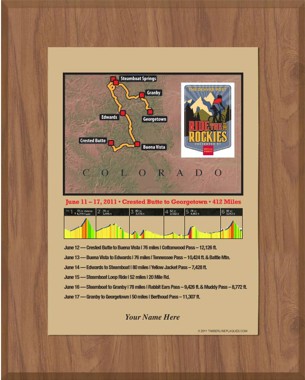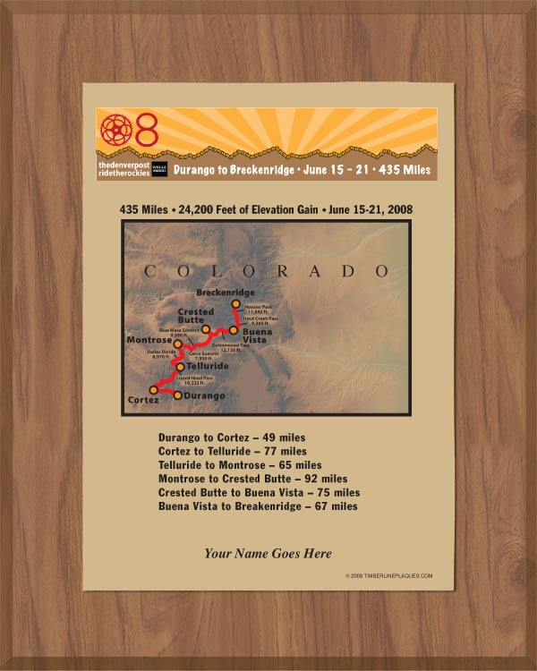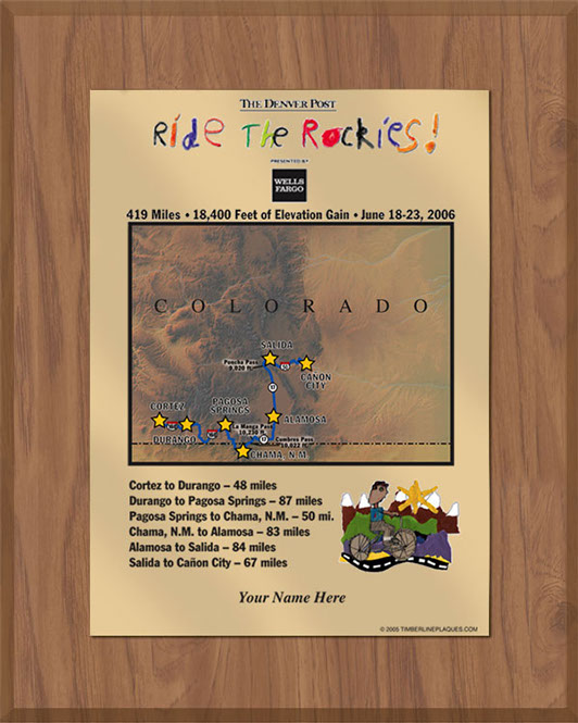 We have been making custom commemorative plaques since 1993 featuring the Colorado Fourteeners Plaque, Colorado Trails Plaque and Ride the Rockies bicylcle tours plaques. We insure the best possible quality crafted products made in Conifer, Colorado.